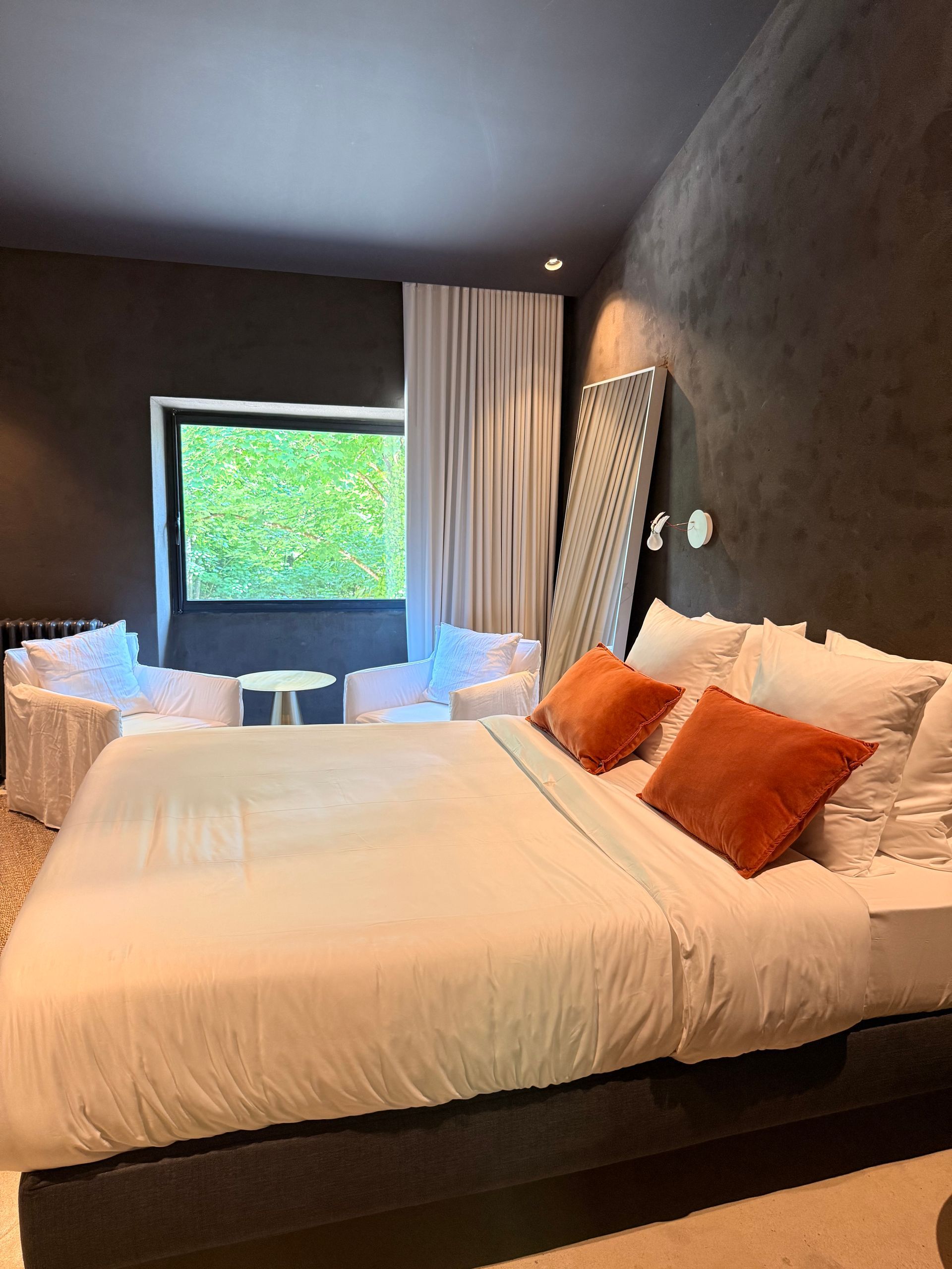 Dormir à la Maison Fontbelle, c'est choisir le charme d'une maison de maître chargée d'histoire ou l'indépendance d'un pavillon cotemporain. Chaque espace est pensé pour offrir une vue imprenable sur la forêt et le murmure des sources.