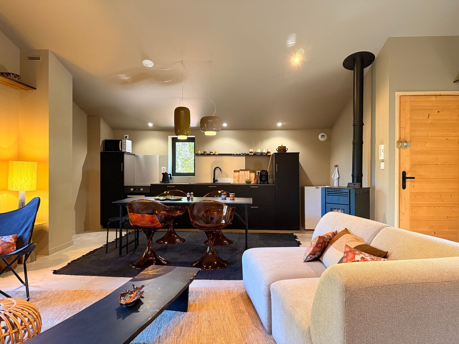 Au sein du pavillon noir, Stipa est un appartement avec 1 chambre et une grande pièce de vie. Équipé d'une cuisine équipée et d'un salon, il offre une vue plongeante sur les bois, offrant calme et sérénité.